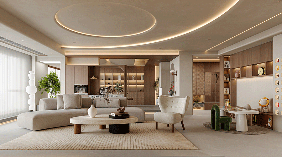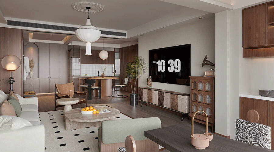 新中式風(fēng)格以“傳承與創(chuàng)新”為核心,設(shè)計(jì)上通過天然大理石、藝術(shù)涂料及大板墻地磚的現(xiàn)代材質(zhì)重構(gòu)東方美學(xué)。天然大理石的山水紋理成為空間視覺焦點(diǎn),以整面背景墻或地面鋪貼的形式,呼應(yīng)傳統(tǒng)水墨意境;藝術(shù)涂料通過手工肌理與素雅色調(diào),為墻面賦予宣紙般的質(zhì)樸感,結(jié)合淺木色木作平衡冷暖;大板墻地磚則以極簡(jiǎn)無縫的鋪貼工藝,營(yíng)造開闊通透的空間基底,局部嵌入金屬線條、格柵屏風(fēng),凸顯傳統(tǒng)榫卯結(jié)構(gòu)的現(xiàn)代演繹。材質(zhì)碰撞中,既有石材的厚重底蘊(yùn),亦通過啞光質(zhì)感與低飽和色彩弱化傳統(tǒng)中式的繁復(fù)感,搭配明清形制簡(jiǎn)化的家具與枯山水?dāng)[件,最終達(dá)成“簡(jiǎn)于形,奢于質(zhì)”的禪意棲居體驗(yàn),實(shí)現(xiàn)傳統(tǒng)文人精神與現(xiàn)代生活需求的共生。